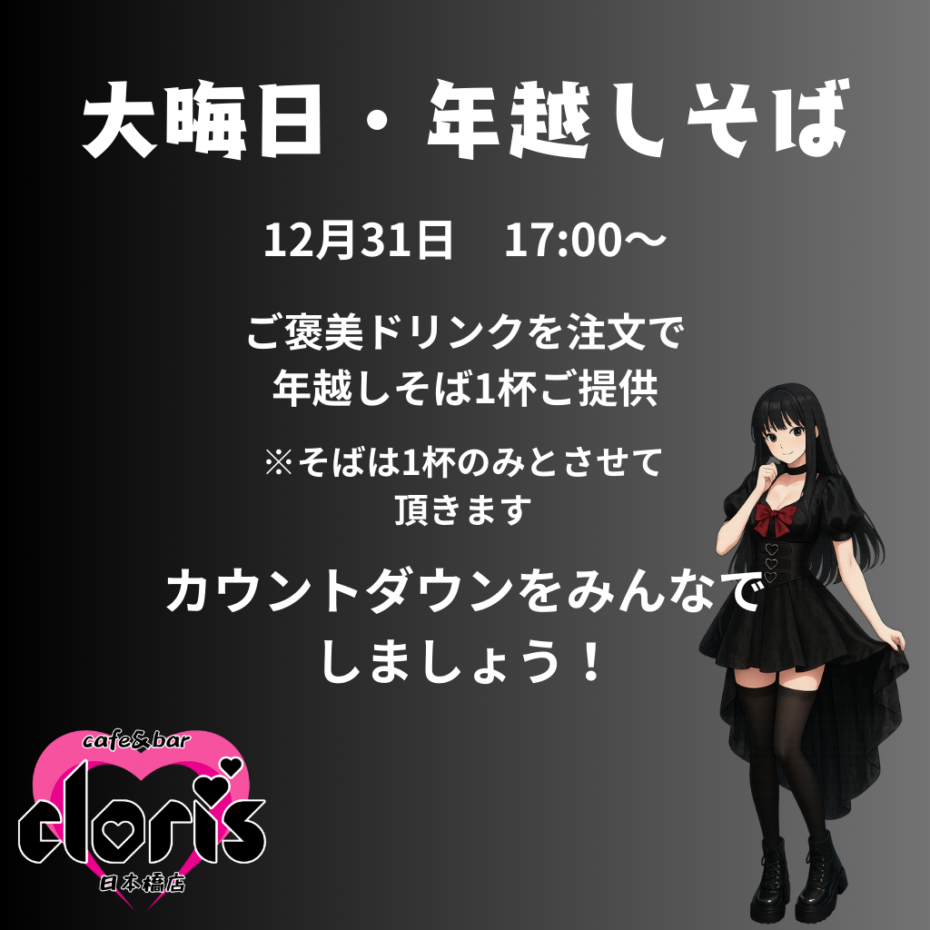 自宅で紅白を見ながら過ごすのも良いですが、クロリスのキャスト達と1年を締めくくりませんか?