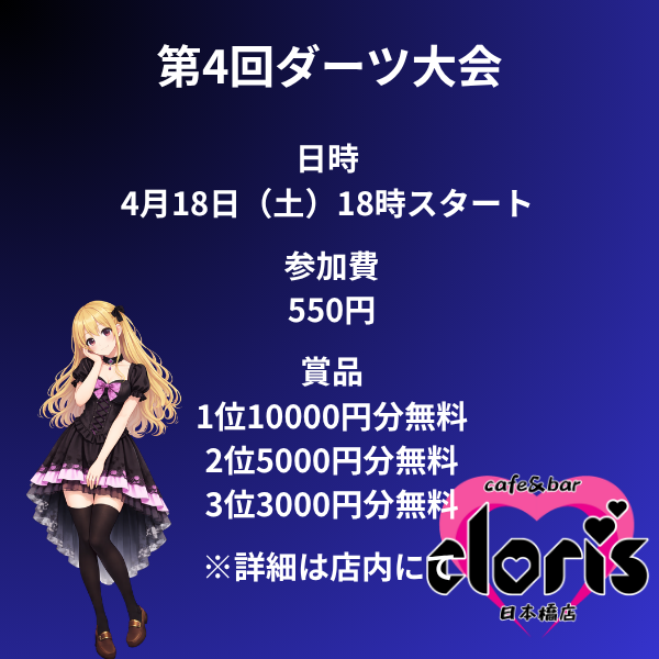 第4回ダーツ大会を下記日程で開催致します🙇♂️